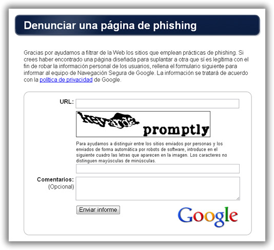 Mantienen un registro de todas las páginas fraudulentas que se han detectado y nos avisan del posible fraude en cuanto intentamos entrar. Pero la información para que este sistema funcione lo más rápidamente posible depende muchas veces de nosotros, los propios usuarios.