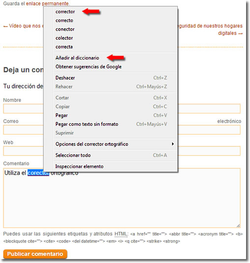 El navegador Chrome de Google, uno de los más utilizados en el mundo, viene ya con un corrector ortográfico instalado. Todo usuario de Internet que desee cuidar mínimamente su imagen a la hora de comunicarse mediante escritos debería activar y aprender a utilizar la herramienta.