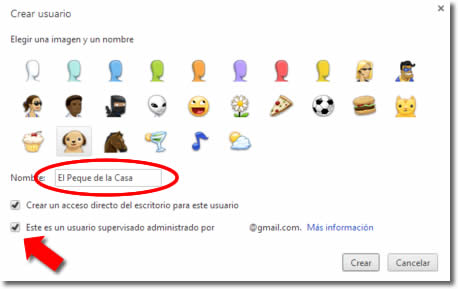 En la pantalla que nos muestra deberemos elegir un icono y un nombre que identificará el perfil y activar también la segunda casilla, la que convertirá al usuario en ‘supervisado’.