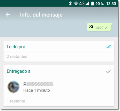 El apartado “Leído por” no nos interesa en este caso, ya que nos centraremos en averiguar si lo ha recibido o no. Nos fijaremos en el apartado “Entregado a”.