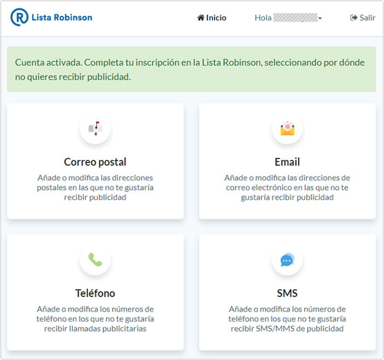 El proceso es sencillo y online. Deberemos acceder a esta página de la Lista Robinson y registrarnos. Una vez rellenado el primer formulario con nuestros datos personales, recibiremos un correo electrónico para confirmar nuestro registro.